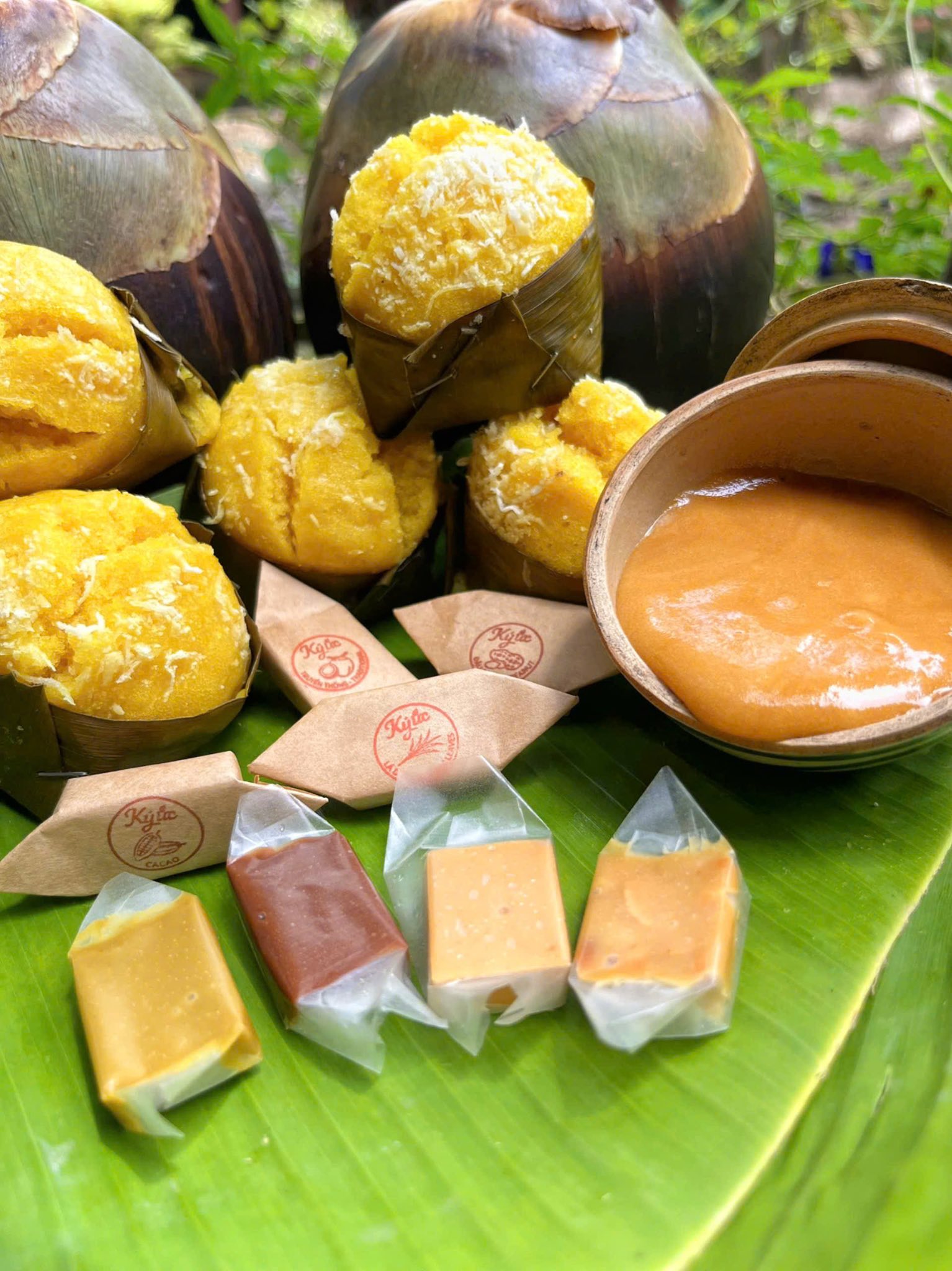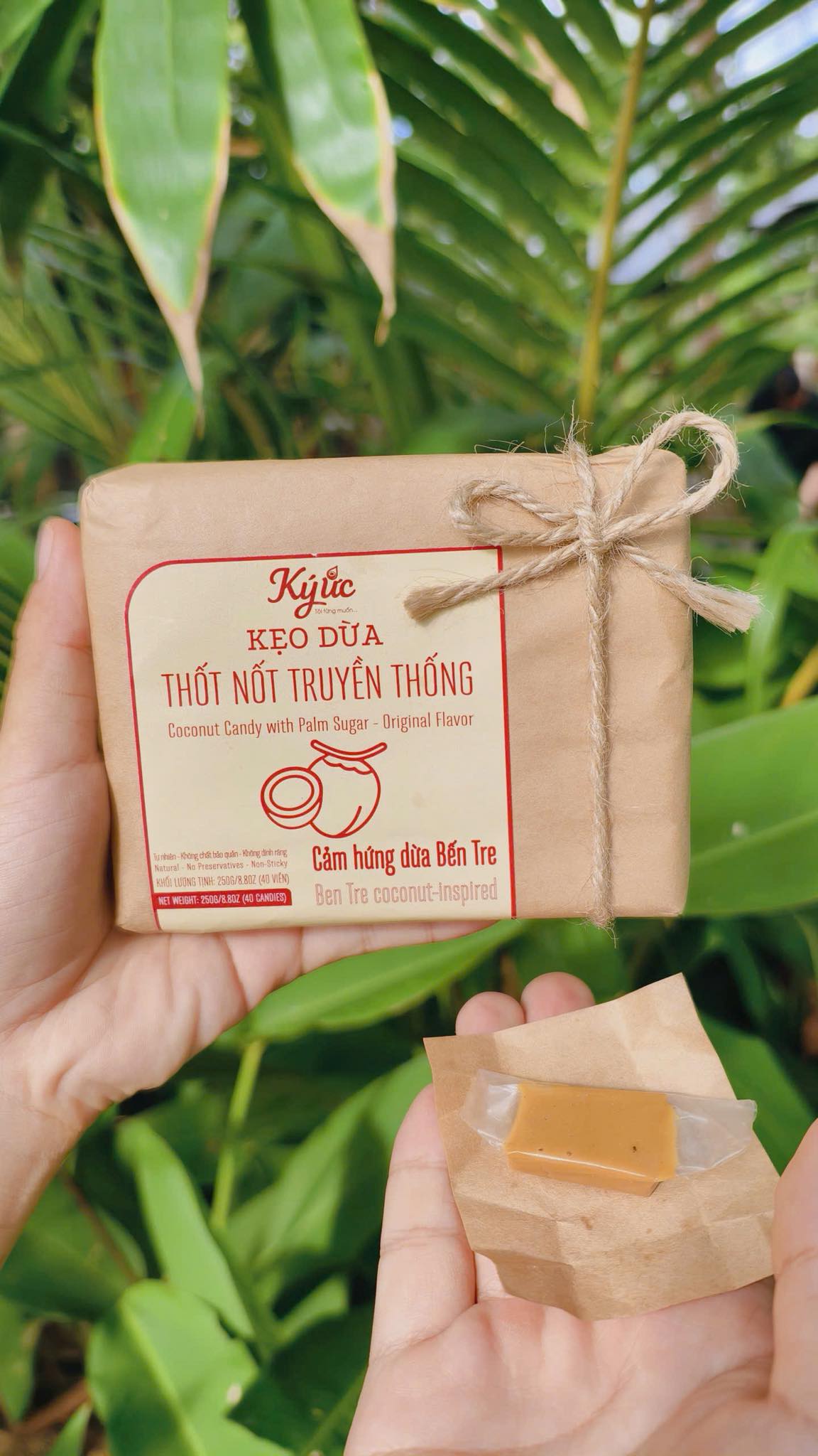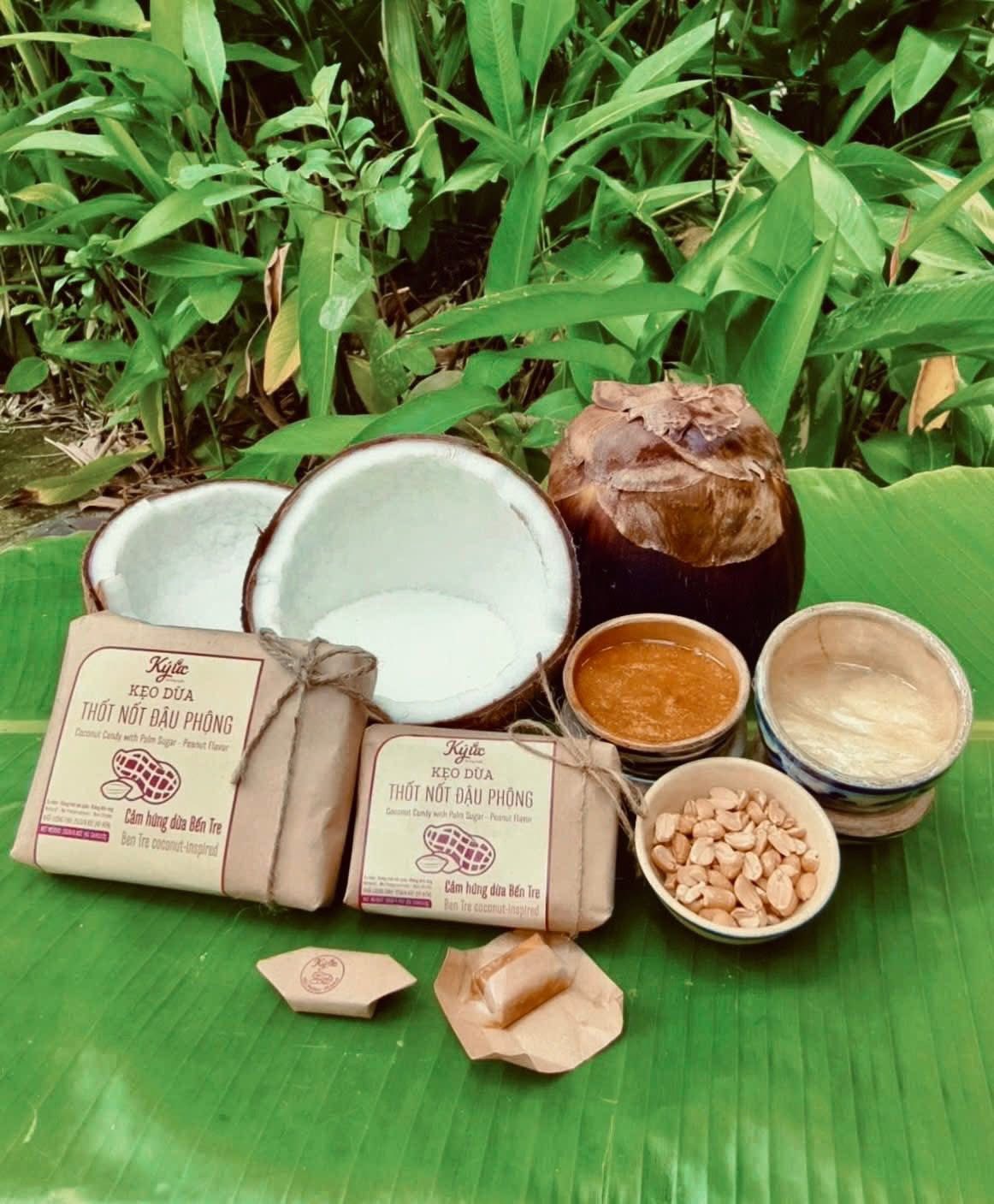 🥥 Nước cốt dừa tươi: Là nguyên liệu có sẵn ở Bến Tre, dừa khô đúng độ, làm kẹo tới đâu thì ép lấy nước cốt đến đó. Đảm bảo độ tươi, độ thơm và độ béo của dừa.