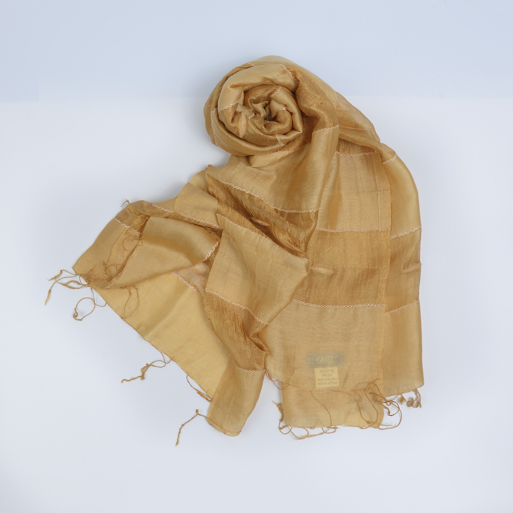 Đặc tính : Khăn mềm, nhẹ và ấm. Sợi bóng trên khăn là sợi lụa tơ tằm, có độ bóng tự nhiên rất đẹp và mềm mại